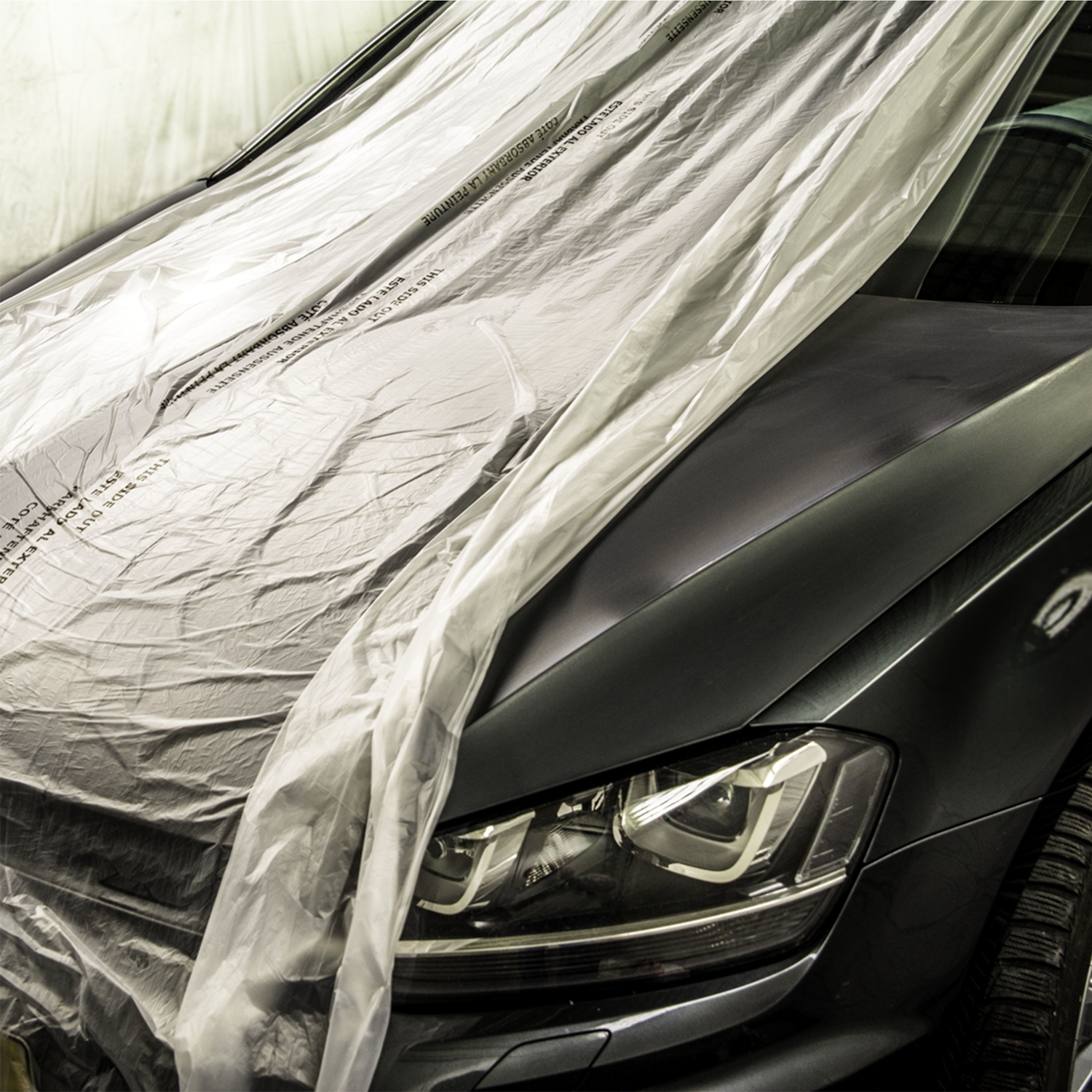 Abdeck- und Spritzschutzfolie mit statischer Aufladung, lackhaftend.