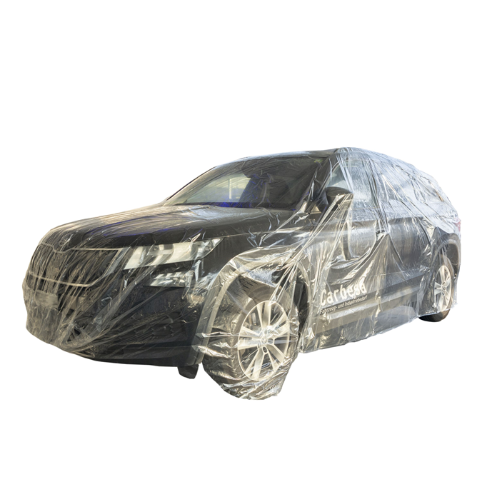 Kunststoffabdeckung zum Schutz des Fahrzeugs gegen Staub.