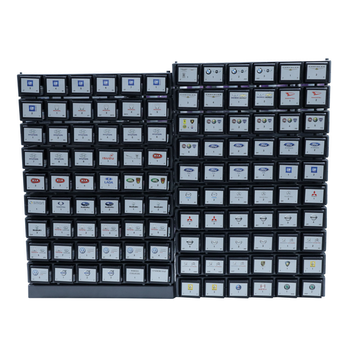 Die Valspar Color Box umfasst mehr als 108 Farbfächer mit insgesamt über 8000 Karten mit Spritzlackfarben und Varianten. Dieses nach Autoherstellern eingeteilte Hilfsmittel versetzt den Anwender in die Lage, sich verschiedene Varianten von Original-Autofarben anzusehen, ohne Musterkarten spritzen zu müssen. Die Farbchips sind mit lieferbaren Octoral-Produkten lackiert, so dass die bestmögliche Farbtreue gewährleistet ist. Jeder Chip enthält Angaben zu Hersteller, Farbname und Farbcode sowie dazu, ob es sich um eine Standardfarbe oder eine Variante handelt. Mit Hilfe der Variantencodierung können Sie außerdem sehen, welche Unterschiede es zwischen den Varianten gibt. Die Color Box wird dreimal pro Jahr aktualisiert, so dass sie stets auf dem neuesten Stand der Entwicklungen ist.