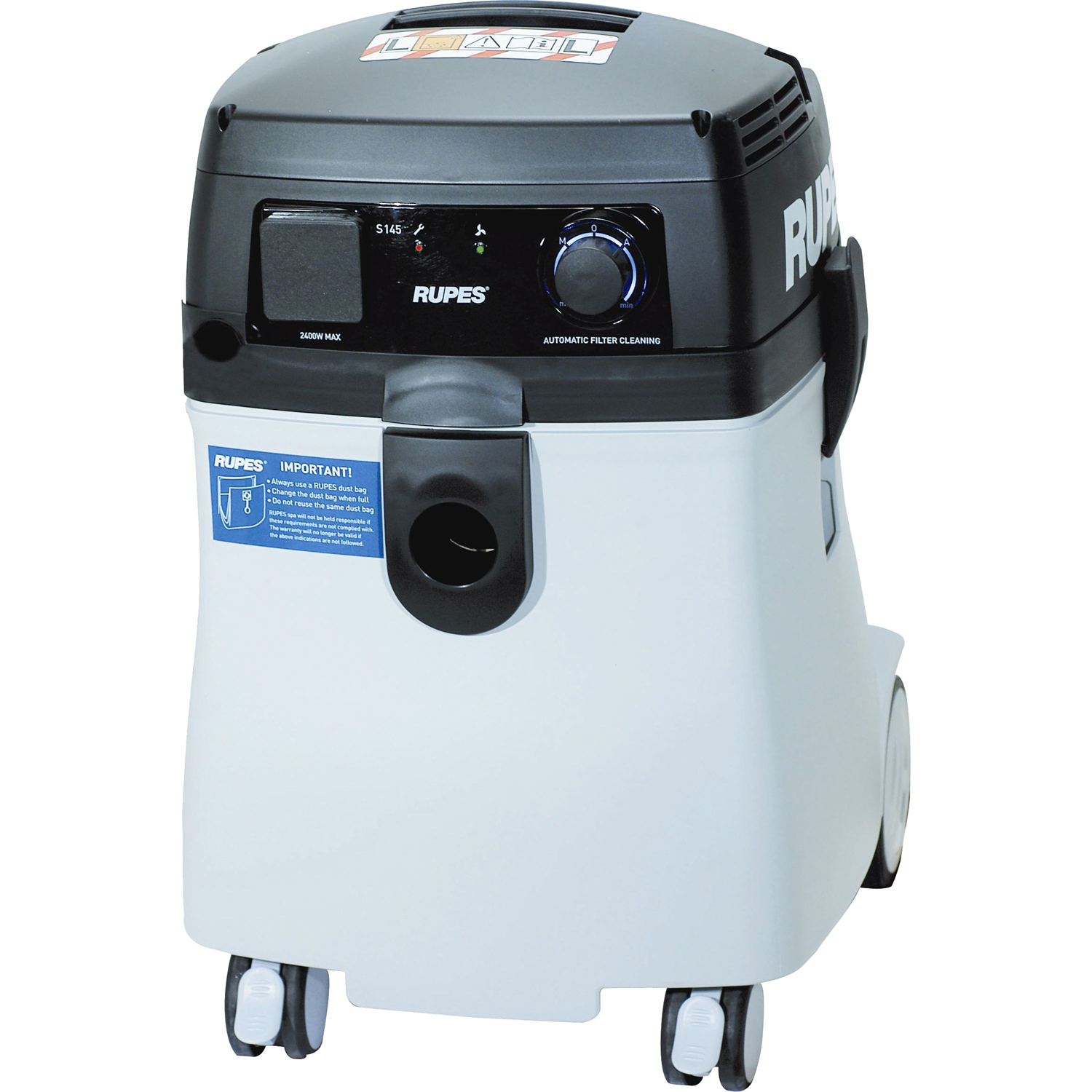 - Extrem geräuscharm - Mobile Sauger für das Absaugen von Schleifstäuben und Stäuben, die bei verschiedenen Arten der industriellen Bearbeitung entstehen, vorgerüstet für den Anschluss eines elektrischen Werkzeugs - Auch für das Absaugen von Flüssigkeiten geeignet - RUPES-Patent: S.C.S. Self Cleaning System, System zur automatischen Abreinigung von Filtereinsätzen. - M.I.C. Multifunction Intelligent Control, manuelles oder automatisches Starten, Drehzahlregelung, Füllstandsanzeige für Flüssigkeiten, Speicherung der Arbeitszeiten und Voranzeige “Service Interval” für den Austausch - Versionen mit zwei Filtern, grosse Filteroberfläche und Filterkapazität für eine saubere Umgebung - Vorrichtung zur Streuung elektrostatischer Aufladungen - Grossformatiger Behälter für Stäube und Flüssigkeiten, mit grossem rückseitigem Fach für Kabel und Ablage oben für Zubehör und Werkzeuge - Universal-Drehanschluss auf der Vorderseite für Schläuche Ø25-29-38-50mm