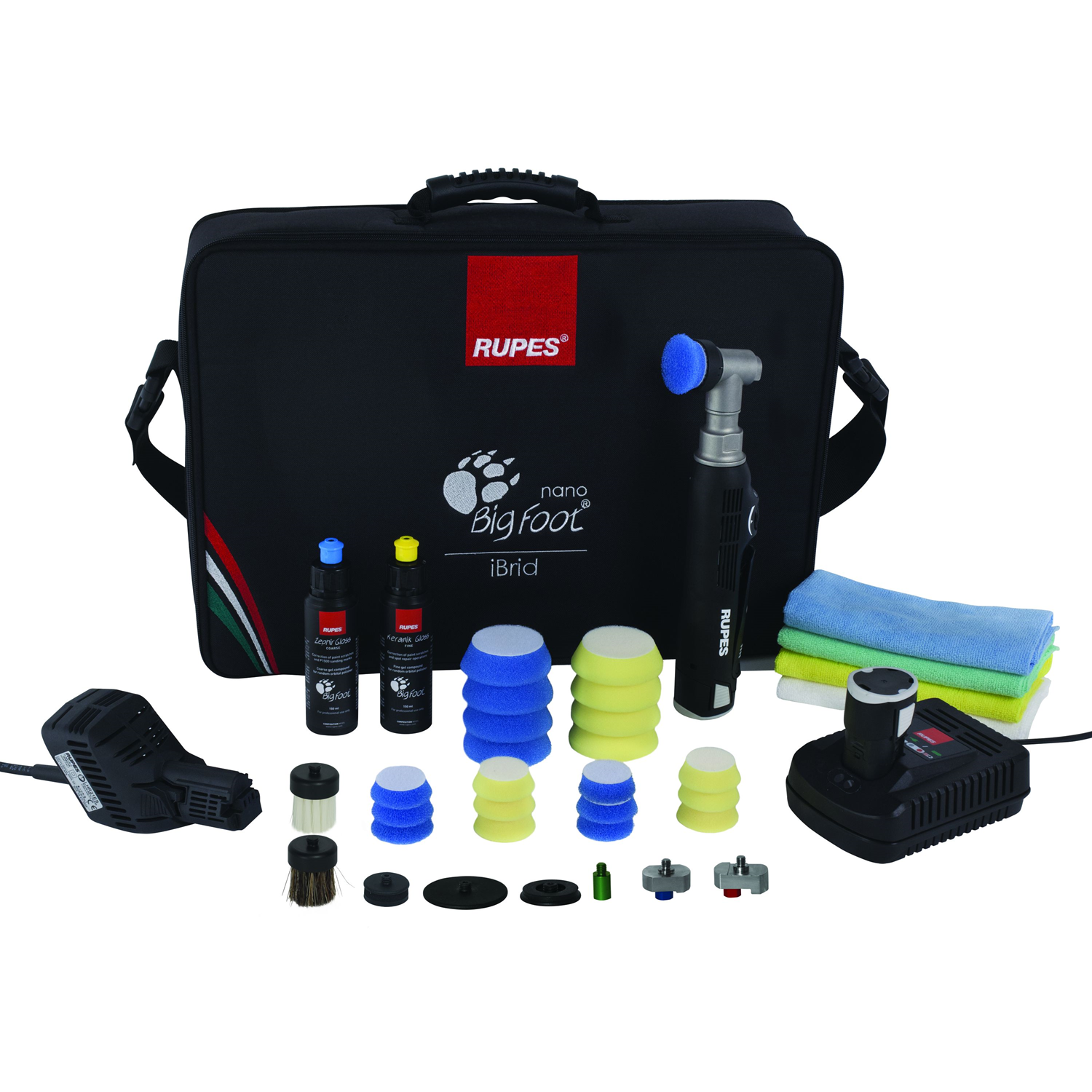 Die Bigfoot iBrid Nano vereint Polieren, Schleifen und Reinigen in einem Werkzeug. Kleinste Stellen können effizient bearbeitet werden und spart so wertvolle Zeit. Der Lithium-Ionen-Akku der IBird, ermöglicht Ihnen einen 30 minütigen unbeschwerten Einsatz. Die Ladezeit beträgt ca. 15 Minuten. Im Set sind zwei Lithium-Ionen-Akkus enthalten, sodass die Einsatzbereitschaft immer gewährleistet ist. Optional kann auch das mitgelieferte Netzteil als Spannungsversorgung genutzt werde. Die Spindelarretierung ermöglicht einen schnellen und einfachen Wechsel der Stützteller und des Zubehörs. Fünf Arbeitsgeschwindigkeiten für mehr Flexibilität und Soft Start. Der Motor hat ein hohes Drehmoment für gleich bleibende Leistung im Batteriebetrieb und bei der Nutzung mit dem Netzkabel. Der iBrid Nano ist kompakt, ergonomisch und extrem leicht für den Einhandbetrieb konstruiert.