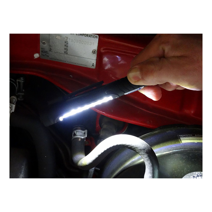 Wiederaufladbare SMD LED Inspektionslampe, Leuchtstarke gleichmässige Ausleuchtung (Linsentechnologie), Seiten- und Frontlampe (90 / 70lm), Extraleicht (54g), Eingebauter Magnet, Gummierter Griff, Ladeanzeige (rot/grün), Ladezeit ca. 2h, Beinhaltet USB Kabel & 230V Ladegerät