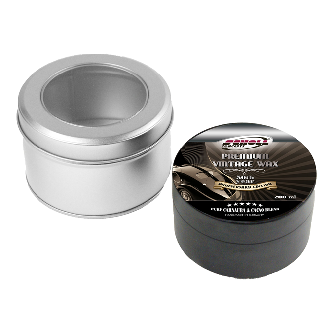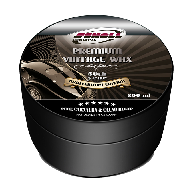 PREMIUM VINTAGE WAX ist ein von Hand in Kleinserie gefertigtes Wachs der Spitzenklasse mit einem maximalen Anteil von 30% an hochreinem brasilianischen Carnaubawachs (ca. 60% in Volumen). Durch die einzigartige Formulierung lässt sich VINTAGE-Wachs in einer hohen Schichtstärke auf dem Lack applizieren. Diese glasklare Schutzschicht hinterlässt einen absolut brillanten Spiegelglanz und schützt den Lack über viele Monate vor Witterungseinflüssen.