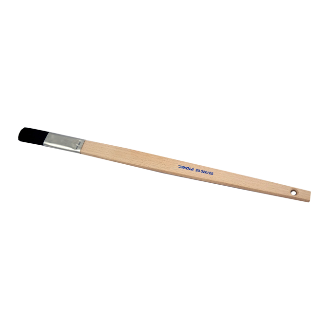 Zum Aufrühren der Farbe im Mischbecher. Schwarze Chinaborsten, roher Holzstiel