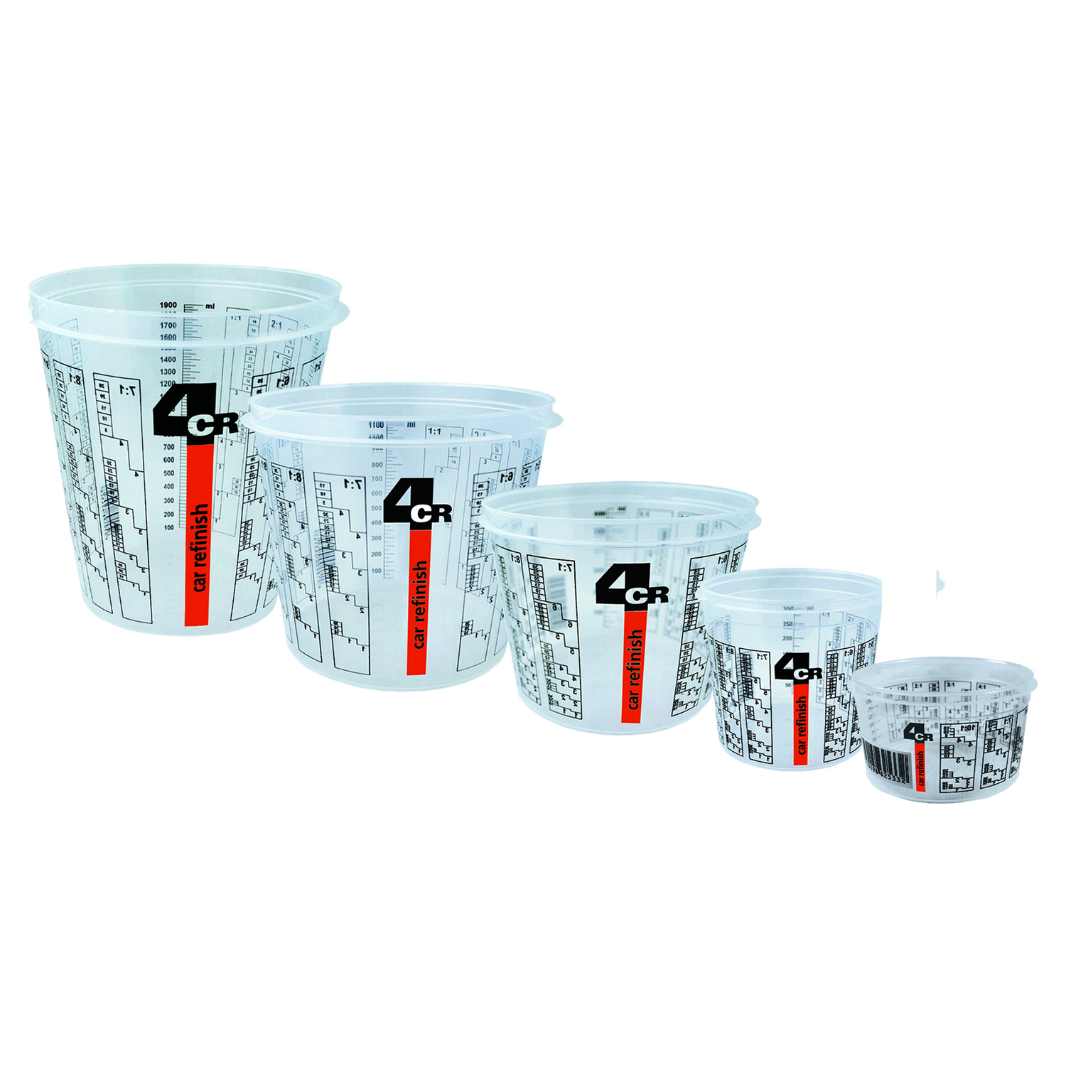 Einwegmischbecher zum Anmischen und Aufbewahren aller Lackmaterialien, inkl. Mischskala.
