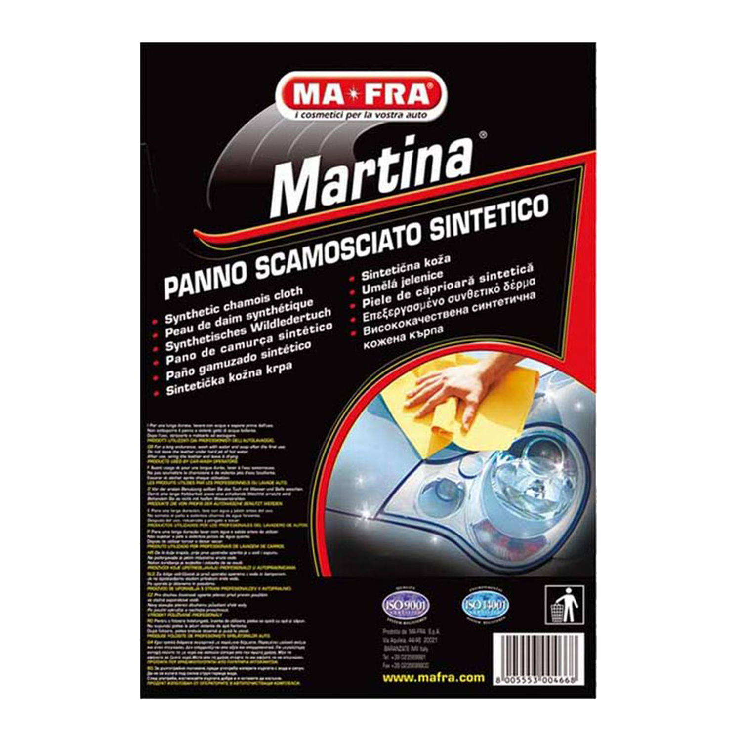 Der grosse, synthetische Lederlappen mit hoher Saugfähigkeit. MARTINA ist ein synthetischer Lederlappen der entwickelt wurde, um sowohl den Profis der Autowäsche, als auch Autofahrern oder Motorradfahrern, bei dem Trocknen ihres Fahrzeugs behilflich zu sein. Auch nach vielen Wasch- und Trockenvorgängen, beseitigt das Tuch MARTINA einwandfrei Wasserrückstände von jedem beliebigen Fahrzeug ohne Schlieren zu hinterlassen.