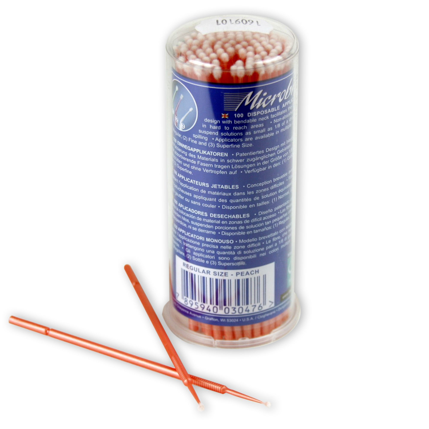 Patentiertes Design mit biegbarem Hals erleichtert die Platzierung des Materials in schwer zugänglichen Gebieten. Nicht fasernde und nicht absorbierbare Fasern tragen Lösungen in der Grösse von 1/8 eines Tropfens ohne Verschüttung und ohne Vertropfung auf.