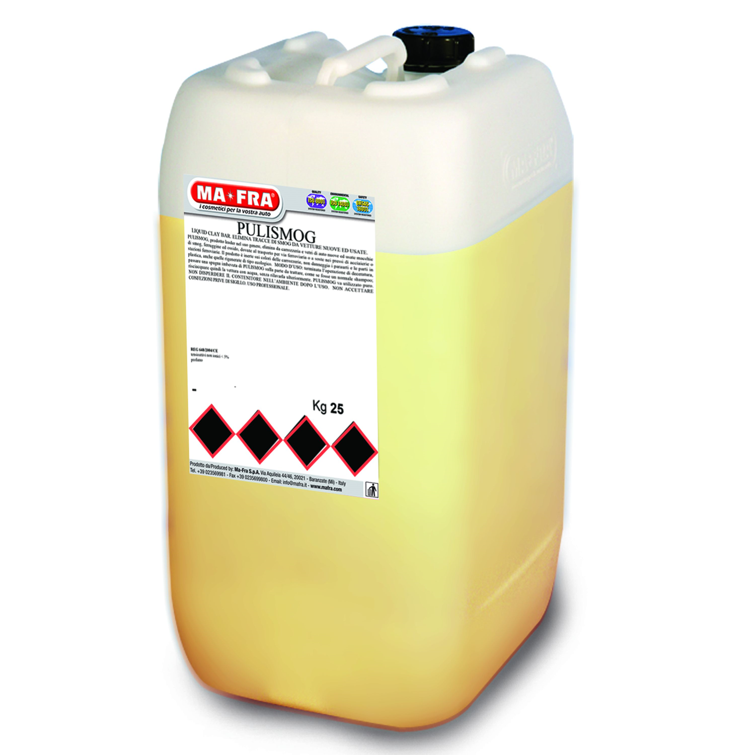 PULISMOG entfernt von der Carrosserie und den Scheiben von sowohl neuen als auch gebrauchten Autos, Smog-, eisenhaltige und Oxiden-Flecken, die durch den Eisenbahntransport oder durch einen Aufenthalt in der Nähe eines Stahlwerks oder an einem Bahnhof entstanden sind. Das Produkt greift die Farben der Carrosserie nicht an und beschädigt weder die Stoßstangen noch die Kunststoffteile.