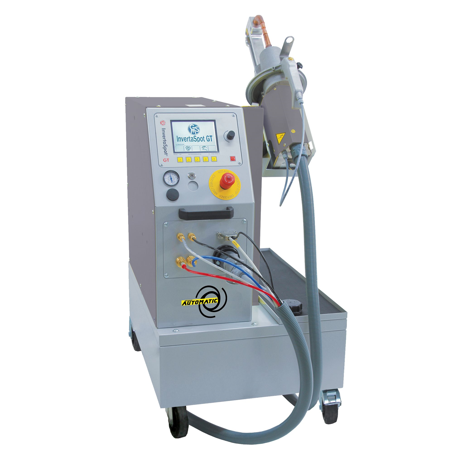 Automatisch prozessgeregelter Punktschweiss-Inverter: absolut unkompliziert in der Bedienung und sicher in der Anwendung. Lieferumfang Steuergerät GT, 80l Tank inklusive Räder, C-Trafozange, C-Arm Gr.1 70x150mm, Balancer mit Federzug. Stromkabelhalterung, Zangenablage, C-Bügelaufnahmedorne (5Stk.) und Bedienungsanleitung.
