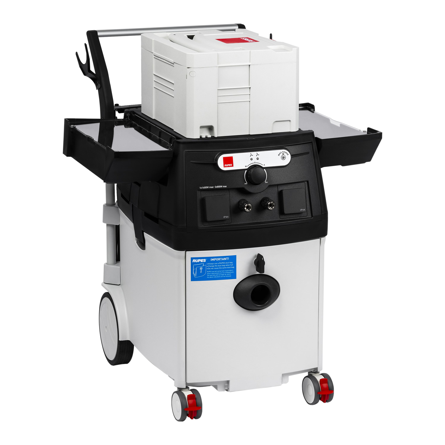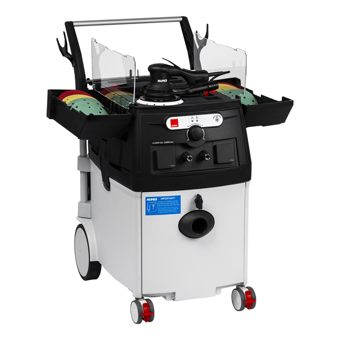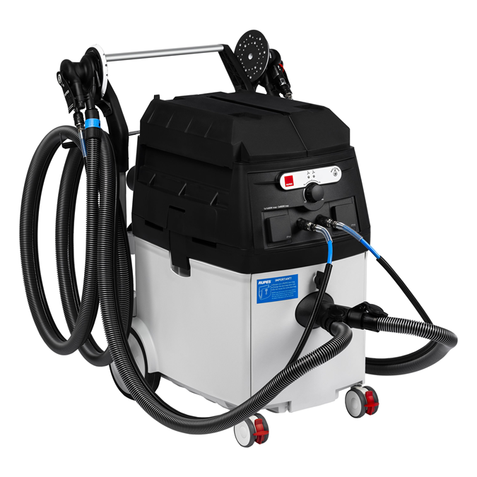 Le KS300 est un aspirateur professionnel avec station de travail intégrée qui garantit une efficacité de filtration élevée avec une surface de filtration de 3m2 et deux étapes de filtration. Cet aspirateur compact, maniable et puissant peut prendre en charge deux opérateurs simultanément grâce à la technologie dual motor innovante qui comprend deux moteur 1200W. Les moteurs peuvent fonctionner en alternance ou ensemble et un seul moteur peut supporter jusqu'à deux outils en même temps. L'unité comprend deux prises électriques et deux prises pneumatiques, toutes deux avec système de démarrage automatique, qui permettent la connexion d'outils pneumatiques et électriques.
