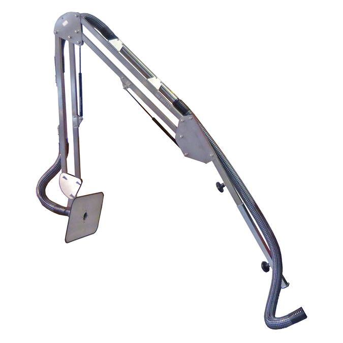 Ce bras télescopique pivotant pour la capture des fumées de soudage s'adapte sur la station d'aspiration mobile. Le bras peut également être monté sur le satellite d'alimentation Media et peut pivoter librement avec une portée de 2 mètres. Le tuyau de raccordement et la hotte sont antistatiques.
