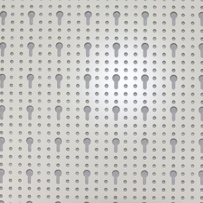 Avec perforations combinées rondes et forme de trous de serrure.