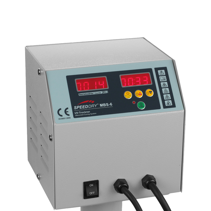 La lampe UV MBS-6 permet une utilisation efficace pour un durcissement rapide et complet des teintes UV et des vernis UV. L'énergie de la lumière UV et de la lumière visible est utilisé pour le durcissement UV. Les teintes et les vernis sont séchés par la lumière UV en une fraction de seconde. Le séchage UV permet de réduire considérablement les coûts d'exploitation et donc de produire à moindre coût tout en conservant une qualité et une productivité élevées. - lampe UV VPOWER de haute qualité avec une durée de vie d'environ 800 - 1000 h.- réflecteur particulièrement résistant en acier inoxydable- ballast électronique pour la lampe UV- pied robuste en profilés d'aluminium solides- roulettes sur roulements à billes avec frein de stationnement- distance de chauffage de 80 à 200 mm- minuterie de 10 secondes à 15 minutes- surface de séchage 400 x 200mm