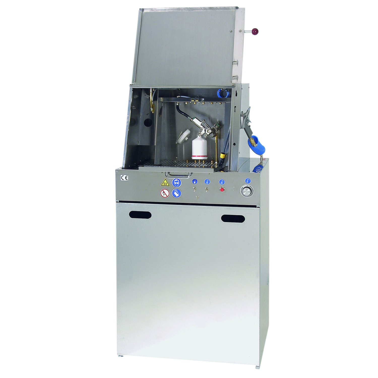 - Possibilité de nettoyage automatique et manuel simultané - Pour solvants et nettoyant pour vernis aqueux H2O B-TEC - Fonctionnement du pinceau assuré par une pompe de nettoyage par circulation - Gicleur jet frais manuel - Dispositif de purge dans le canal d’aération - Aspiration B-TEC éprouvée et performante - Nettoyage automatique des pistolets grâce à un minuteur - Rinçage clair dans l’automate - Système étanche de purge pour pistolets durant le nettoyage - Excellents résultats de nettoyage - Possibilité de réglage personnalisé de toutes les fonctions - Raccordement d’air comprimé avec pistolet de purge et d’évacuation - Cuve de récupération mobile pour des bidons de 30, 58 et 60l