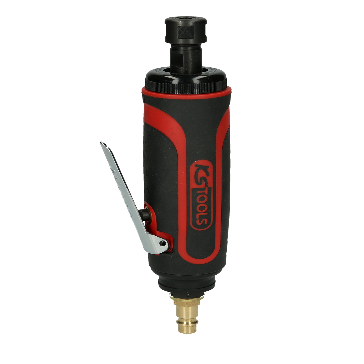 Version droite -sortie d'air vers l'arrière de la poignée - design ergonomique pour un travail à une main - pour fraises HM, mini disques à tronçonner et disques à meuler avec manche hexagonal - pour les travaux de ponçage, de polissage et de gravure - pour le travail dans des endroits exigus - levier de commande avec arrêt de sécurité - molette de réglage des tours minutes - système d'atténuation des vibrations - poignée isolée contre le froid - livrée avec un adaptateur 1/4 - boîtier ultra léger en PVC résistant