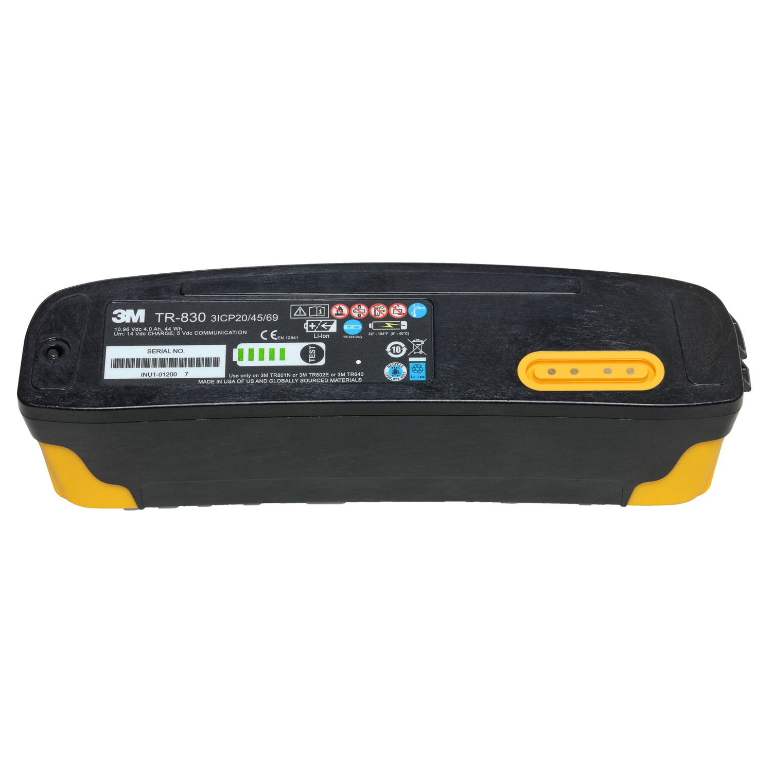 La batterie au lithium-ion 3M Versaflo TR-830, à chargement rapide et sécurité intrinsèque, est créée pour l'unité filtrante 3M Versaflo TR-800. Notre batterie est conçue pour une utilisation dans des ATmosphères potentiellement EXplosives (ATEX) et comporte des butées jaunes pour mieux absorber les chocs. La batterie atteint 90 % de sa charge en 3,5 heures environ et présente un indicateur de niveau de charge pour une référence visuelle. L'outil de fixation de batterie TR-838 (inclus) fixe la batterie mécaniquement à l'unité filtrante pour éviter le risque de débranchement et d'étincelles pendant l'utilisation, conformément à la norme EN 60079-11. Avec une nouvelle batterie TR-830 à sécurité intrinsèque, l'unité filtrante TR-800 munie d'un filtre a une durée de fonctionnement prévue de 6 à 10 heures, selon la configuration du système utilisé. L'autonomie de l'unité filtrante dépend de l'âge de la batterie, de l'encrassement du filtre, de la sélection du filtre ou de la cartouche et des paramètres de débit d'air sélectionnés par l'utilisateur. La batterie peut fournir environ 750 cycles de charge/décharge complets tout en conservant 80 % de sa capacité d'origine, ce qui est deux fois le cycle de vie des batteries standard 3M Versaflo TR-630 et TR-632 à sécurité non intrinsèque.