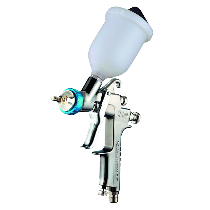 Ce pistolet de projection est doté de gicleurs spécifiquement conçus qui assurent une pulvérisation fine des matières hydrodiluables. Les peintures au solvant peuvent, elles aussi, être pulvérisées très finement ce qui permet automatiquement une application homogène. Ainsi, un bon rendement est assuré.
