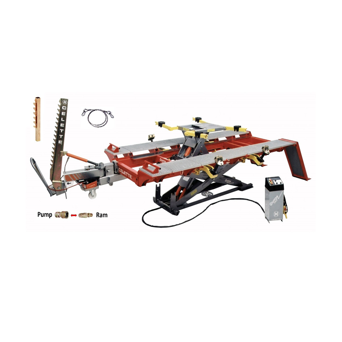 GRIFFON est un marbre double élévateur avec chemin de roulement qui évite la dépose des pinces d'ancrage et des traverses modulaires pour positionner le véhicule. L'élévateur interne est commandé à distance. En fonction du type de réparation, seule une partie du chemin de roulement (léger, en matériaux composite) est retirée. Composé de: - Marbre élévateur - Centrale hydraulique - Élévateur interne - 4 pinces d'ancrage - Chemin de roulement - Câble de sécurité - Equerre de traction Sevenne